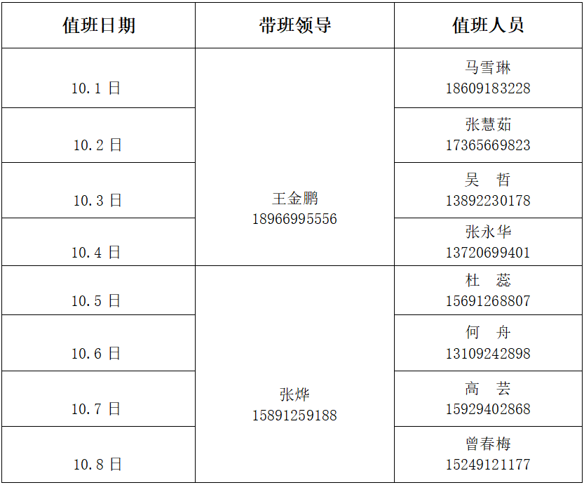 1.全处值班人员在值班期间严肃值班纪律,严格履行职责,完成放假期间常规工作,保持通讯畅通,做好交接班。